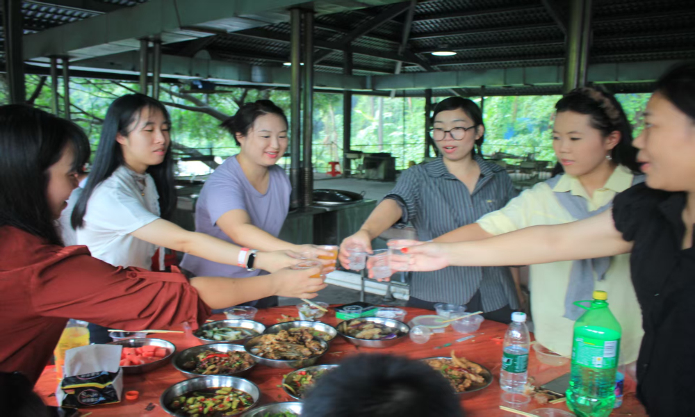 野炊环节满是烟火气。园区备好新鲜食材:活鲈鱼、走地鸡、时令蔬菜,土灶、铁锅与全套调料整齐摆放。大家自发分工:有人生柴火、有人处理食材、有人掌勺烹饪,技术岗同事也撸起袖子尝试颠勺,偶尔炒糊的菜肴引得众人欢笑,反倒更显温馨。吃饱喝足后,休闲项目丰富多样:棋牌室里笑声不断,KTV房内尽情高歌,桌球台前切磋球技,射箭区在教练指导下体验瞄准乐趣,双人单车沿步道漫游,手工陶艺区专注塑形,每个人都能找到心仪的放松方式。