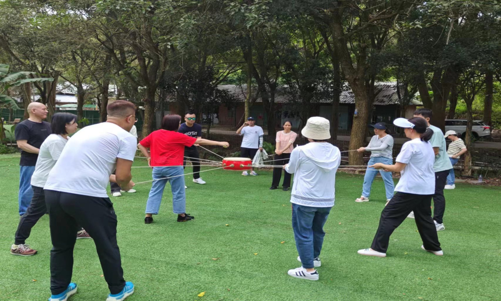 公司团建的活动安排得特别充实,大家玩得不亦乐乎。教练先带着我们做热身运动,简单的拉伸和趣味舞蹈,一下子打破了拘谨。接下来的“珠行万里”游戏,每组同事拿着半截管道,齐心协力把小球从起点运到终点,有人托着管道跑,有人蹲在地上调整角度,小球掉了就赶紧捡起来重新来,没人抱怨,只有互相打气;“击鼓颠球”更是热闹,十几个人围着鼓面,跟着节奏一起发力,看着彩球在鼓上不停跳跃,大家喊着口号,越玩越投入。还有“撕*”环节,大家奔跑、躲闪、结盟,草坪上满是笑声和呐喊声,平时坐在办公室里的同事,此刻都抛开了身份,玩得满头大汗,感情也在打闹中慢慢升温。