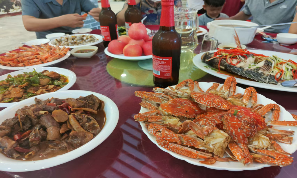 玩到饭点,丰盛的农家乐餐直接让人眼前一亮,这也是幸福港的拿手好戏。食材都是当天新鲜筹备的,走地鸡炖得酥烂,咬一口满是肉香;水库鱼清蒸得恰到好处,鲜而不腥;还有客家酿苦瓜、清炒番薯叶等家常菜,每一道都地道入味,分量还特别足。大家围坐成一大桌,边吃边聊游戏里的趣事,分享生活中的小爱好,没有职场的层级感,只有热热闹闹的烟火气,吃得舒心又暖胃。